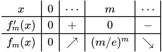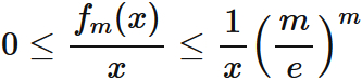 0 \leq f_{m}(x) \leq \left( \frac{m}{e} \right)^m