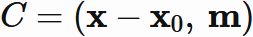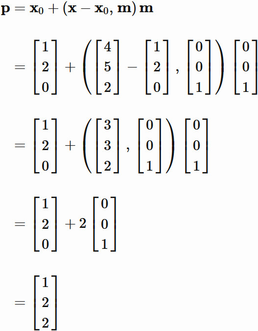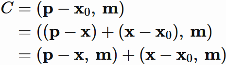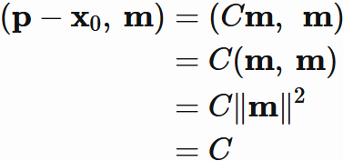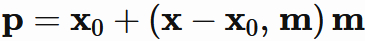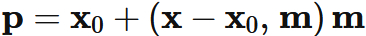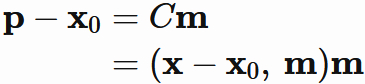右辺の $\mathbf{p}-\mathbf{x}$ は $\mathbf{m}$ と直交するので