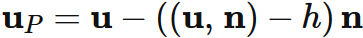 に下した垂線の足 $\mathbf{u}_{P}$ は、