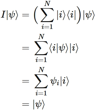 任意のケットベクトル $| \psi \rangle$ に $I$ を作用すると、