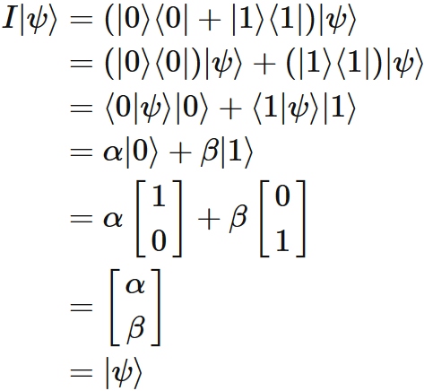 したがって、$I$ は二次元ヒルベルト空間上の恒等作用素(単位行列)である。