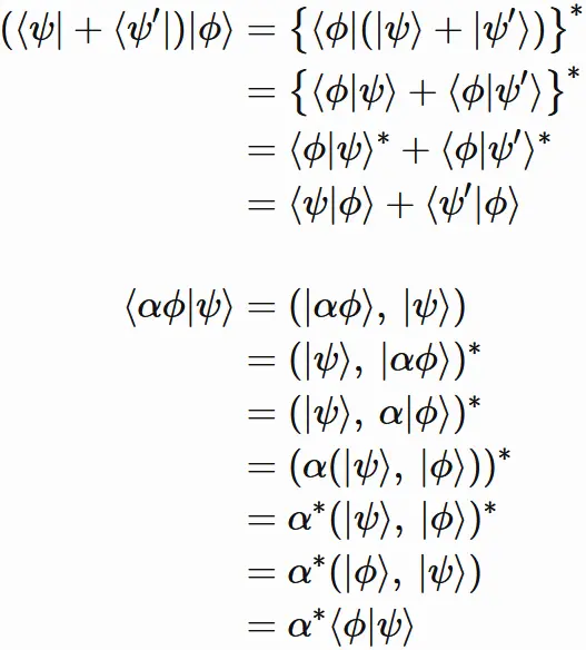 任意のベクトル $ | \psi \rangle$ と $| \phi \rangle$ に対して、
