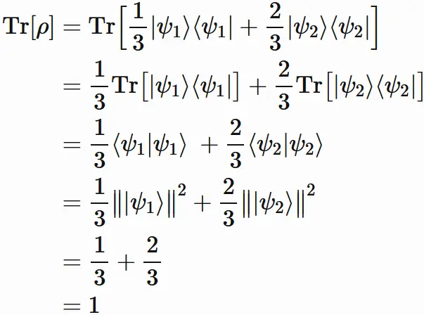 ● $\rho$ が密度作用素 $ \hspace{1mm}\Rightarrow \hspace{1mm}$ $\rho \geq 0, \hspace{1mm} \mathrm{Tr}[\rho] =1$