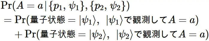 $A$ を観測し $A=a$ という結果を得る確率は、