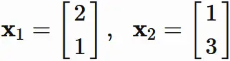 列ベクトルを $\mathbf{x}_{1}, \mathbf{x}_{2}$ と表す。