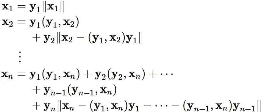 グラムシュミットの直交化法によって互いに直交するノルムが 1 のベクトルを生成することができる。
