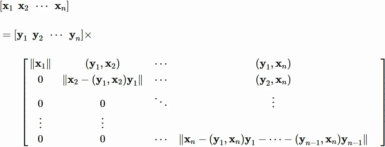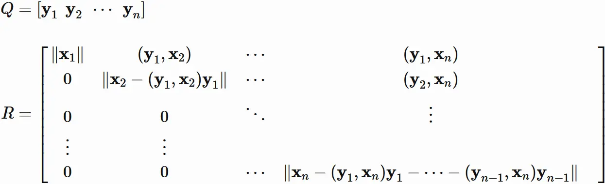 直交行列 $Q$ と上三角行列 $R$ の積によって
