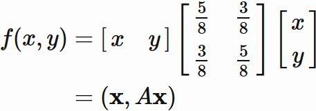 $f$ を最小にする $(x,y)$ は 固有値 $1/4$ を出す $A$ の固有ベクトルであることも示される。