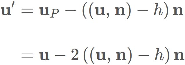 $\mathbf{u}$ の平面 $P$ に対する鏡映点を