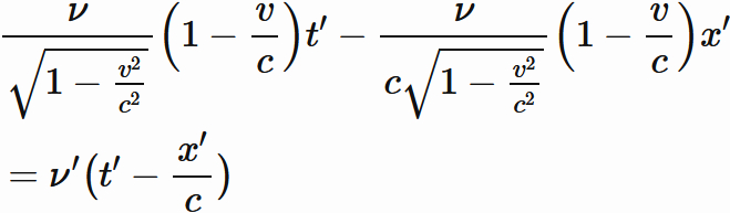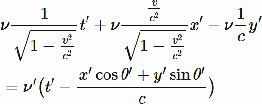\nu' = \nu \frac{1}{\sqrt{1-\frac{v^2}{c^2}}}