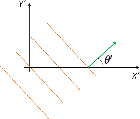 $X'$ 軸との成す角が $\theta'$ の方向を向いた正弦波であるとする。