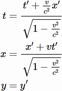 各座標系(慣性系)における観測結果を関係づける変換式である。