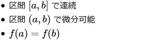 ( $f'(\xi) = 0$ を満たす $\xi$ が 区間 $(a, b)$ 内に存在する )