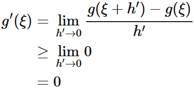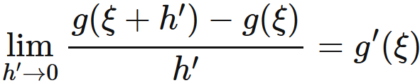 $h' \rightarrow 0$ の極限値 $g'(\xi)$ が存在する。