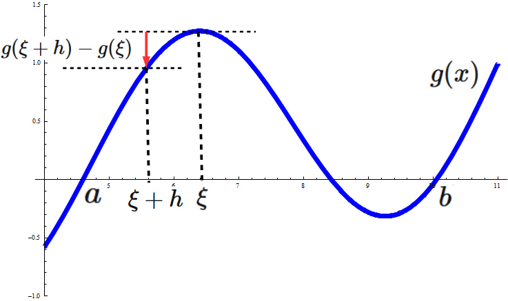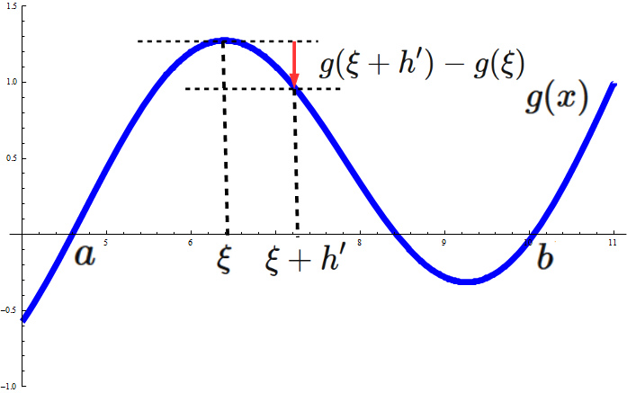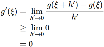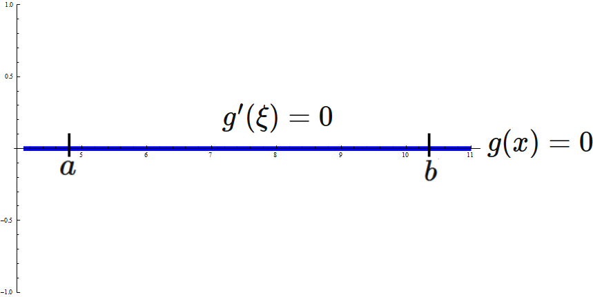 明らかに $g'(\xi) = 0$ を満たす実数がこの区間に存在する。