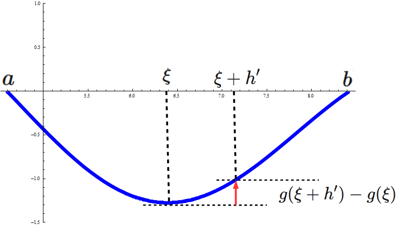 $\xi+h' \in (a,b)$ を満たす $h' > 0$ に対して
