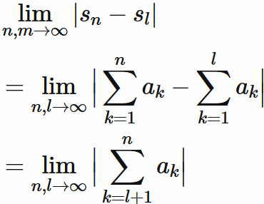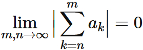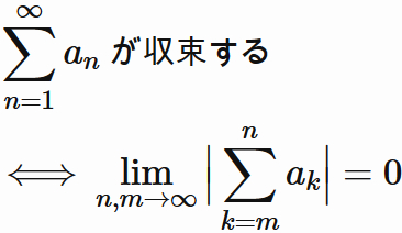 $\small \sum a_{n}$ が収束 $\hspace{1mm} \Longleftrightarrow \hspace{1mm}$ $ \small \lim_{m,n \rightarrow \infty} | \sum_{k=n}^{m} a_{k} | = 0$