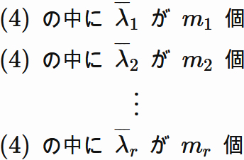 $(4)$ の中に $(5)$ のそれぞれが $m_{1}, m_{2}, \cdots, m_{r}$ 個ずつ含まれるとする。