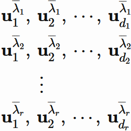 $(9)$ は各固有空間内で直交する総数 $n$ のベクトルである。