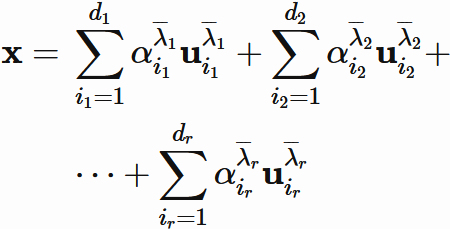 固有空間 $E_{\overline{\lambda}_{k}}$ の基底の線形結合で表される。