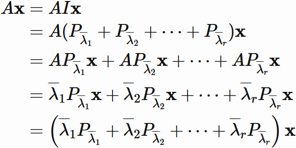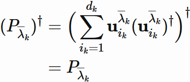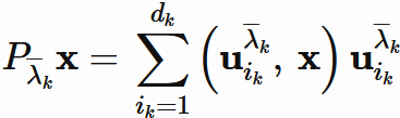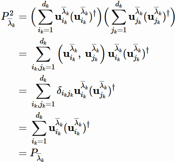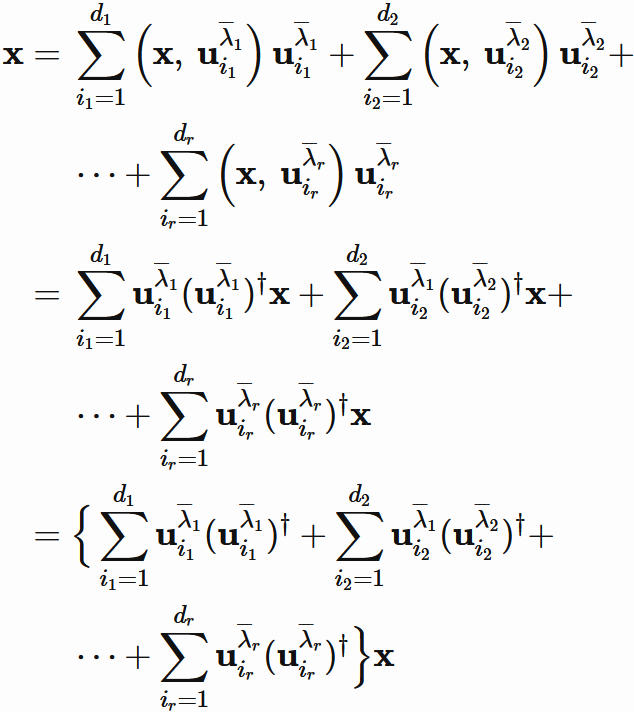 $P_{\overline{\lambda}_{k}}$ が任意のベクトルを固有空間 $E_{\overline{\lambda}_{k}}$ のベクトルに変換する射影行列であることを表している。