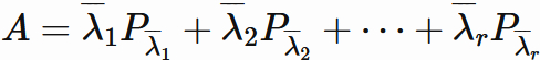 $A$ の各固有値とその固有空間上への射影行列の積の線形結合によって表すことができる。
