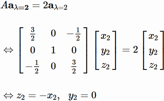 ここで、 2行目を求めるときには、異なる固有値の固有ベクトルが直交すること