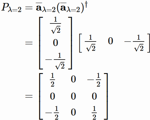 この固有空間に射影する射影行列 $P_{\lambda=2}$ は、