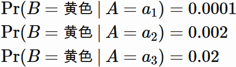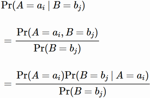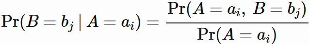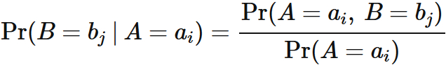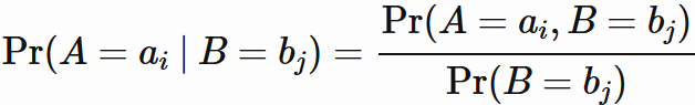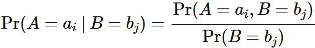 ただし、定義されるのは $ \mathrm{Pr}(A=a_{i}) \neq 0$ の場合のみに限る。