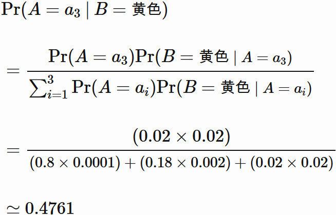 ベイズの定理に基づいて求めると、