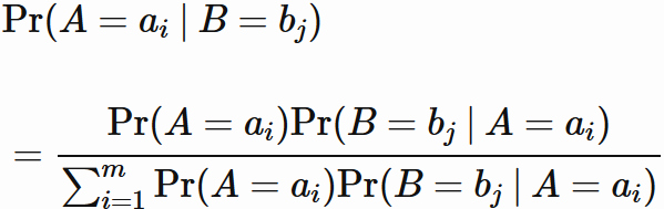 ただし、定義されるのは $ \mathrm{Pr}(B=b_{j}) \neq 0$ の場合のみに限る。