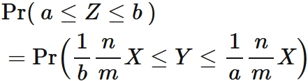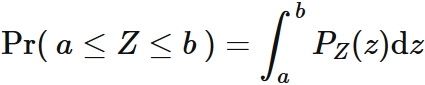 $Z$ の値が $a$ から $b$ の間に観測される確率 $\mathrm{Pr} ( \hspace{1mm} a \leq Z \leq b \hspace{1mm})$ は、