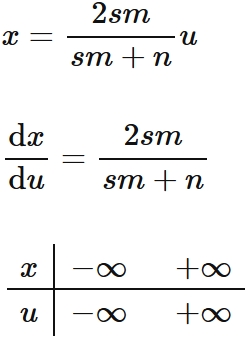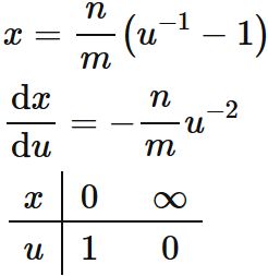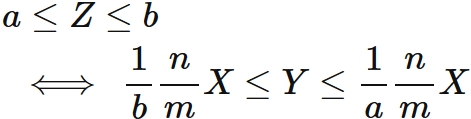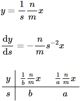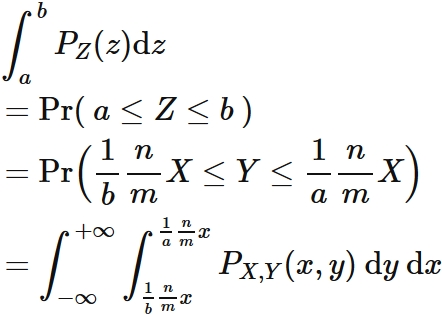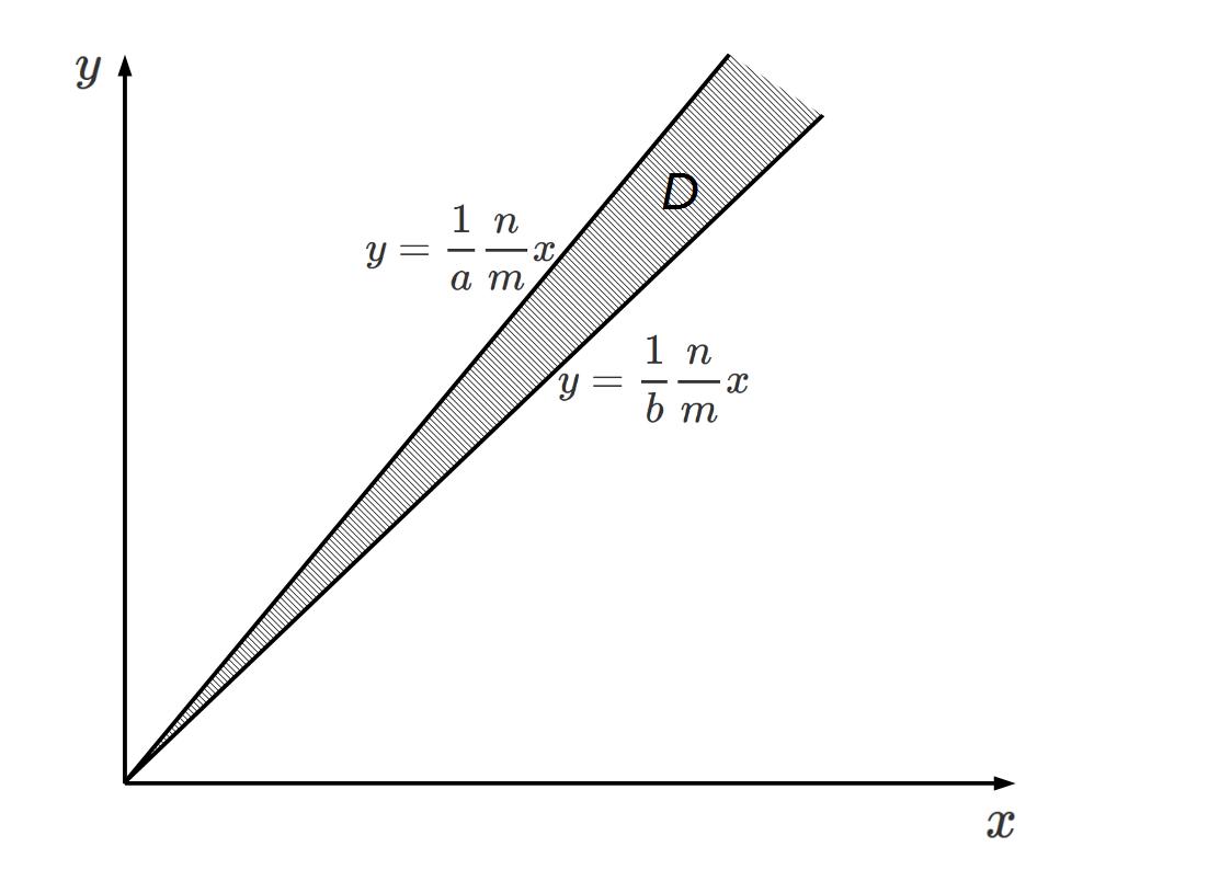 $y$ について $\frac{1}{b} \frac{n}{m}x$ から $\frac{1}{a} \frac{n}{m}x$ まで積分した後、