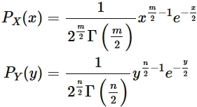 互いに独立な確率変数 $X$ と $Y$ がそれぞれ自由度 $m$ と $n$ の
