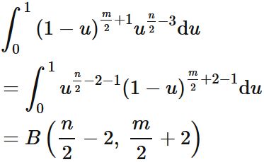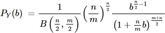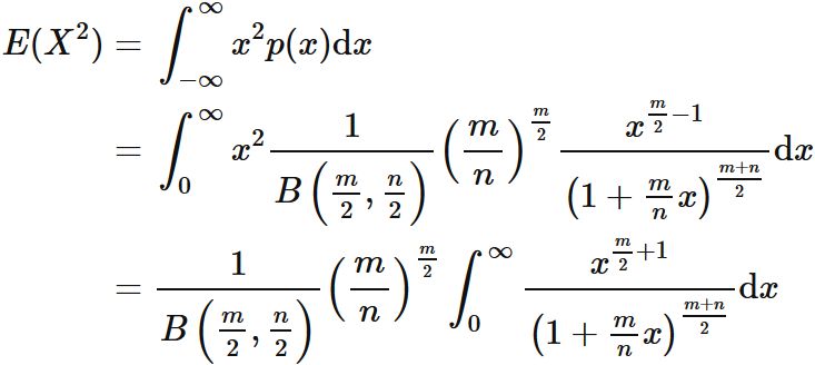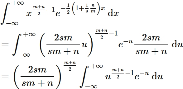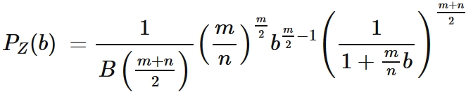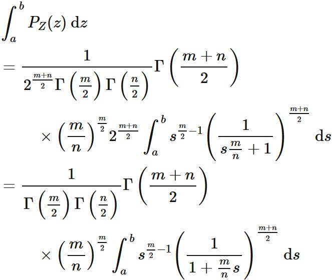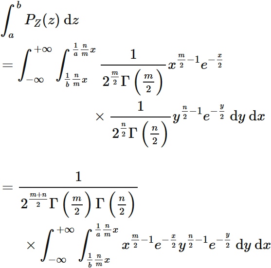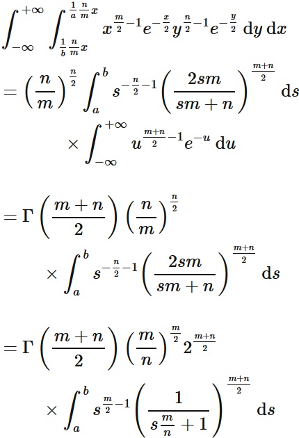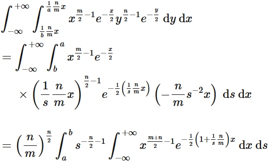 以上から、自由度がそれぞれ $m$ と $n$ のカイ二乗分布に従う確率変数の比