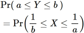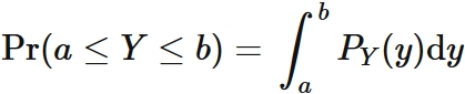 $Y$ が区間 $a \leq Y \leq b$ の間に観測される確率 $\mathrm{Pr} (a \leq Y \leq b) $ は、