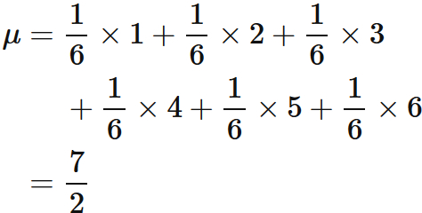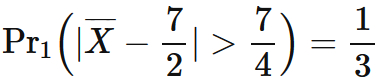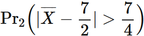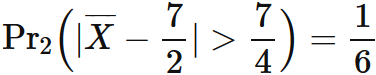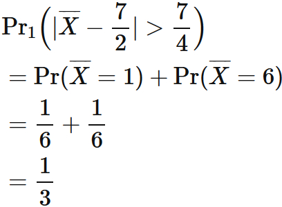 この中で標本平均 $\overline{X}$ と期待値 $\mu=\frac{7}{2}$ の差の絶対値