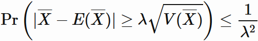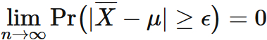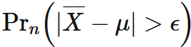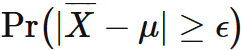 標本平均 $\overline{X}$ と期待値 $\mu$ との差の絶対値が特定の値 $\epsilon$ よりも大きく観測される確率