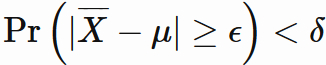 標本平均と期待値 $\mu$ の差の絶対値が $\epsilon$ 以上の値で観測される確率