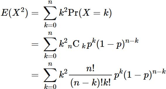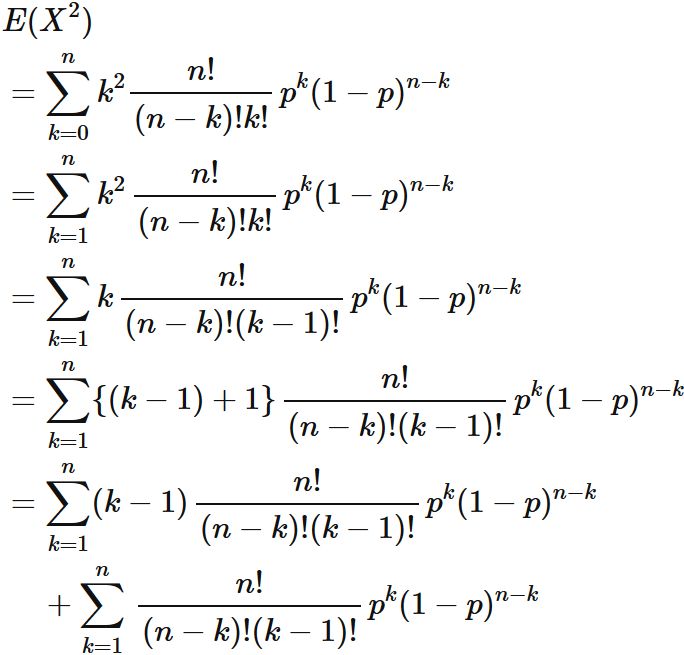 二項分布 $B(n,k)$ に従う確率変数 $X$ の分散 $\sigma(X)$ は、
