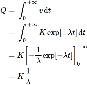 充電量が総充電量(総電荷量) $Q$ に到達する。