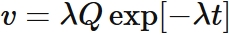 指数分布の確率密度関数に従って時間変化する。