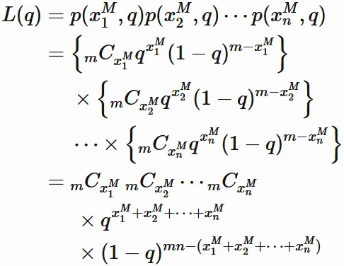 母集団のパラメータ $q$ の値が何であったかを推定したい。