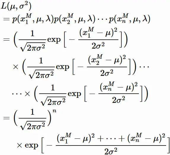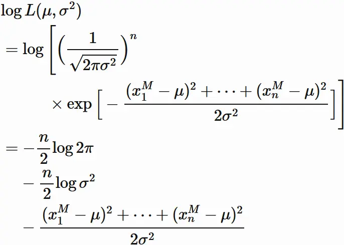 観測結果 $(2.2)$ から計算される尤度 $L$ が最大になる $\mu$ と $\sigma^2$ を求め、