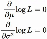 $L$ を $\mu$ と $\sigma^2$ で微分して $0$ になる条件