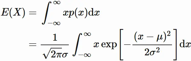 正規分布 $N(\mu, \sigma)$ に従う確率変数 $X$ の確率密度関数 $p(x)$ は、