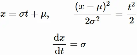 積分範囲が $-\infty$ から $+\infty$ までの 2 次のガウス積分の公式によって、