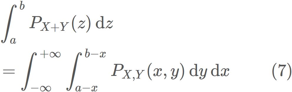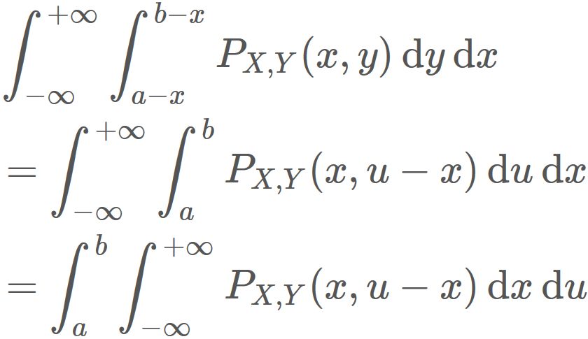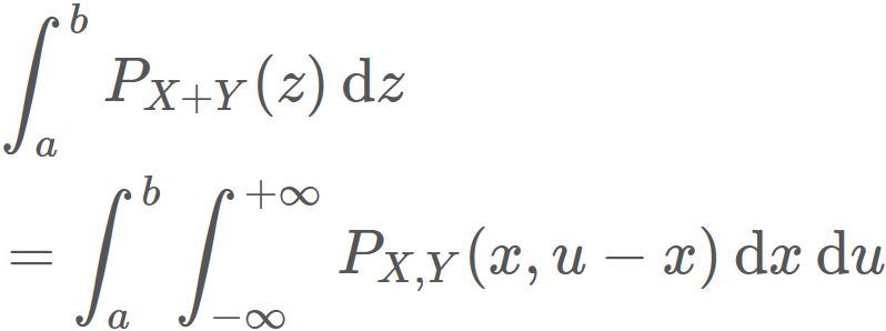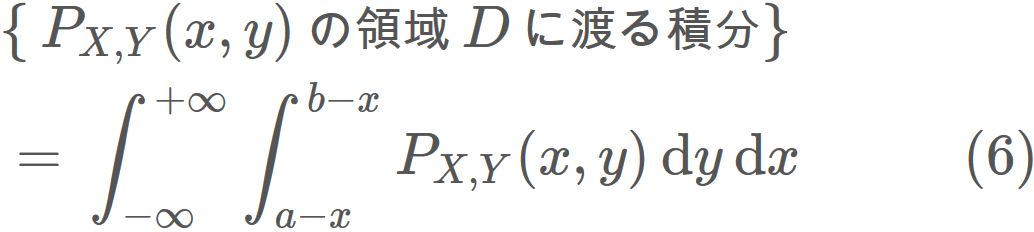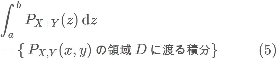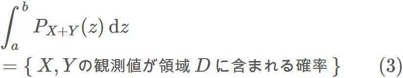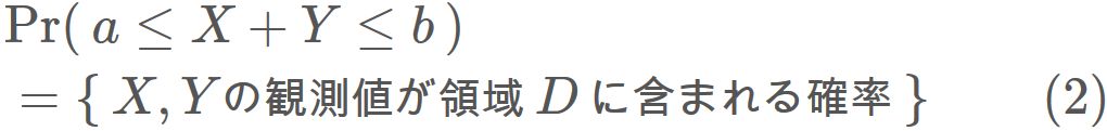 $X+Y$ の観測値が $a$ から $b$ の間に観測される確率 $\mathrm{Pr} ( \hspace{1mm} a \leq X+Y \leq b \hspace{1mm})$ は、