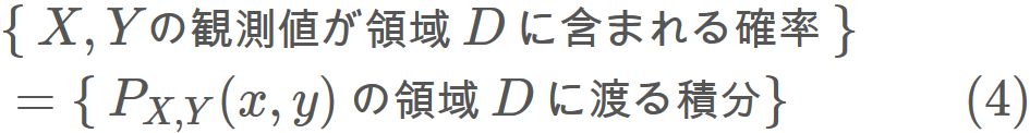 一般に、$X$、$Y$ の観測値がある領域の中に含まれる確率は、
