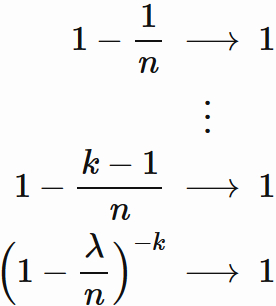 これは二項分布が $\lambda = np$ を一定に保ちながら $n$ を大きくする極限において、
